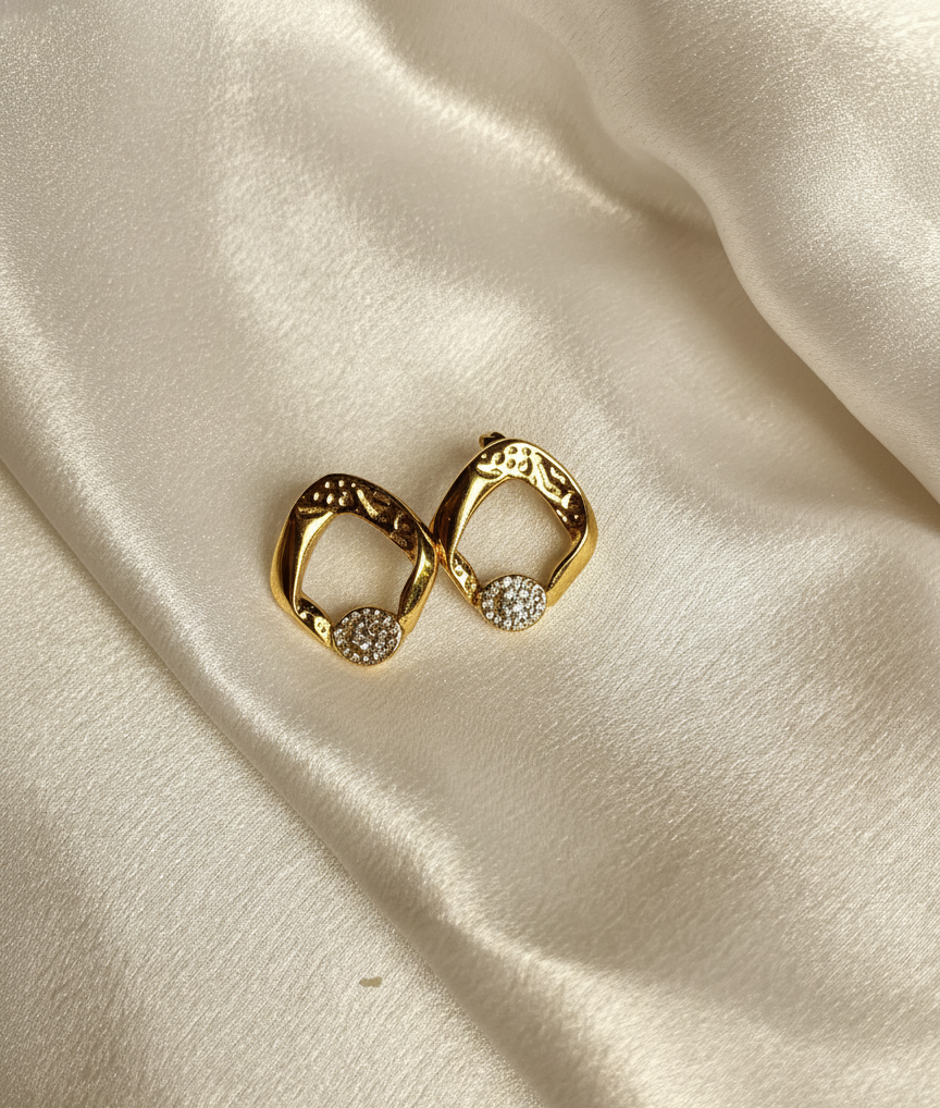 Elevate your style with our exquisite 18K gold-plated stud earrings, featuring sparkling zircon accents. Perfect for adding a touch of sophisticated glamour to any outfit, from daily wear to special occasions. Shop timeless elegance.
