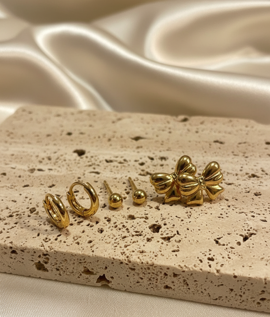 Bow 3-Piece Gold Plated Earrings Combo | Vyaraa