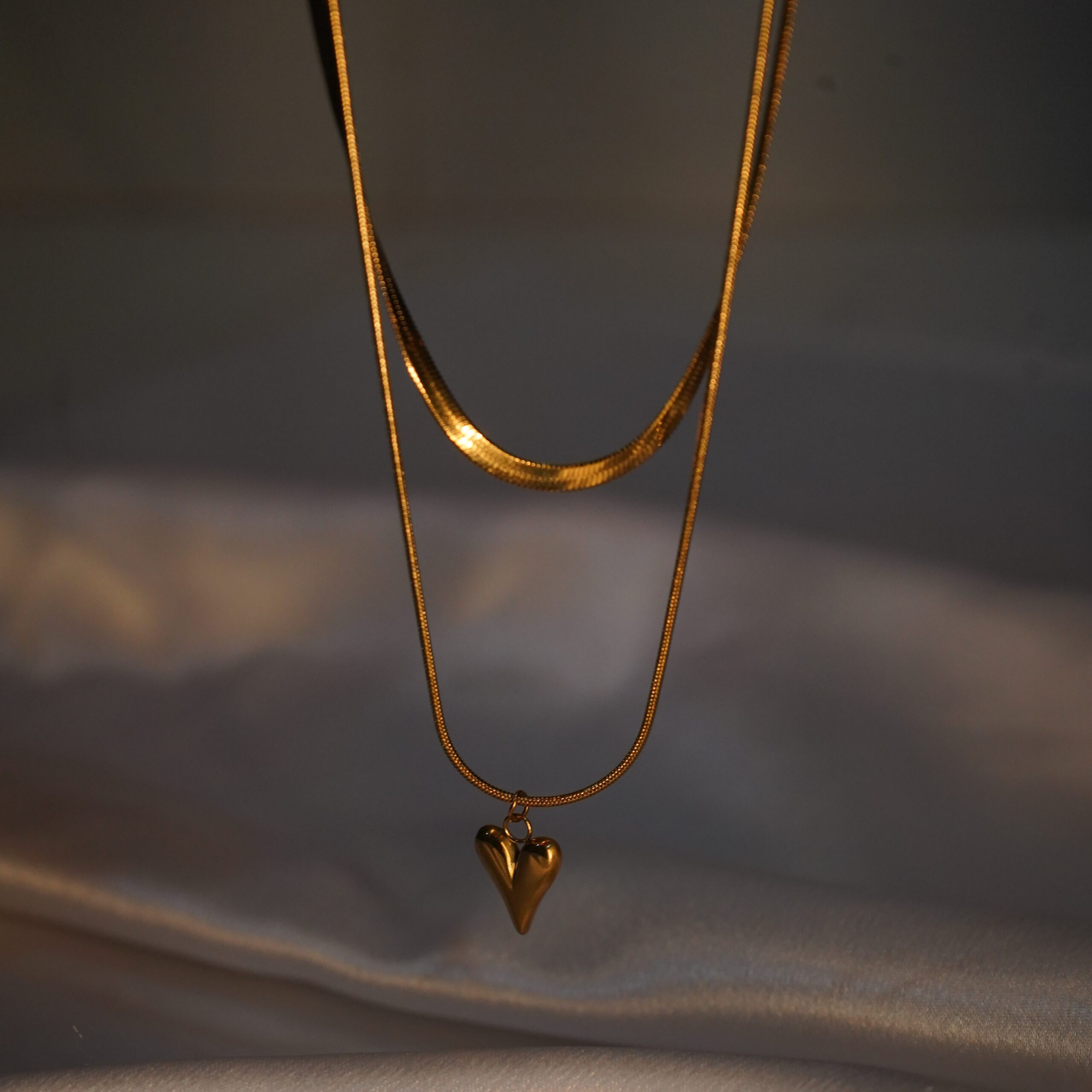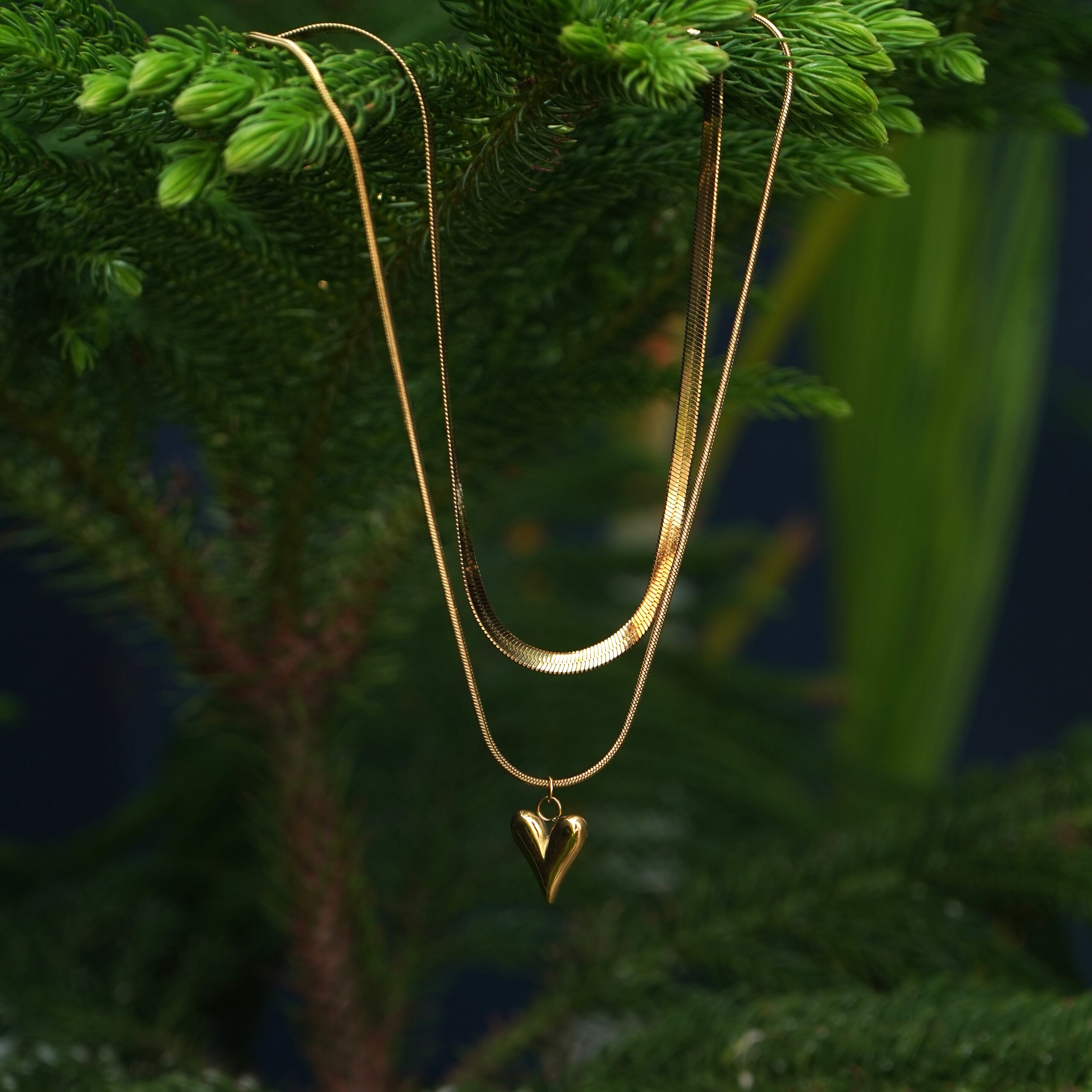 Dual Layer Heart Pendant Anti Tarnish Chain