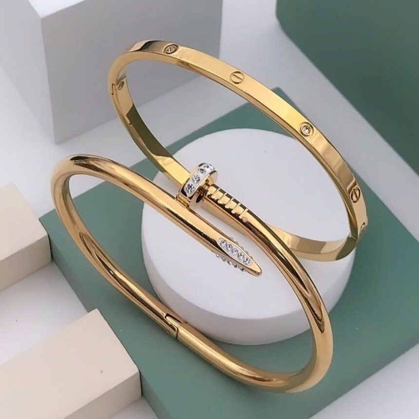 combo bracelete setGolden Classic Nail Kada Combo | Premium Set of 2 for Girls & Women – Vyaraa