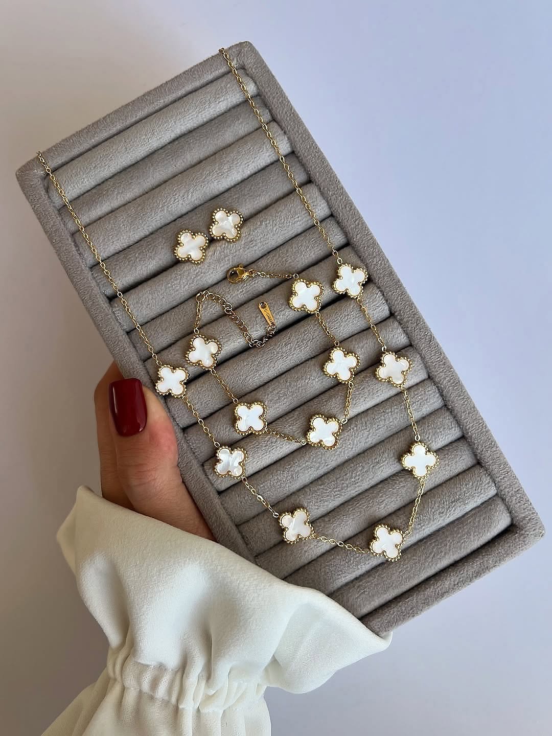 Vyaraa Anti-Tarnish White Clover Jewellery Combo – Set for Women & Girls
