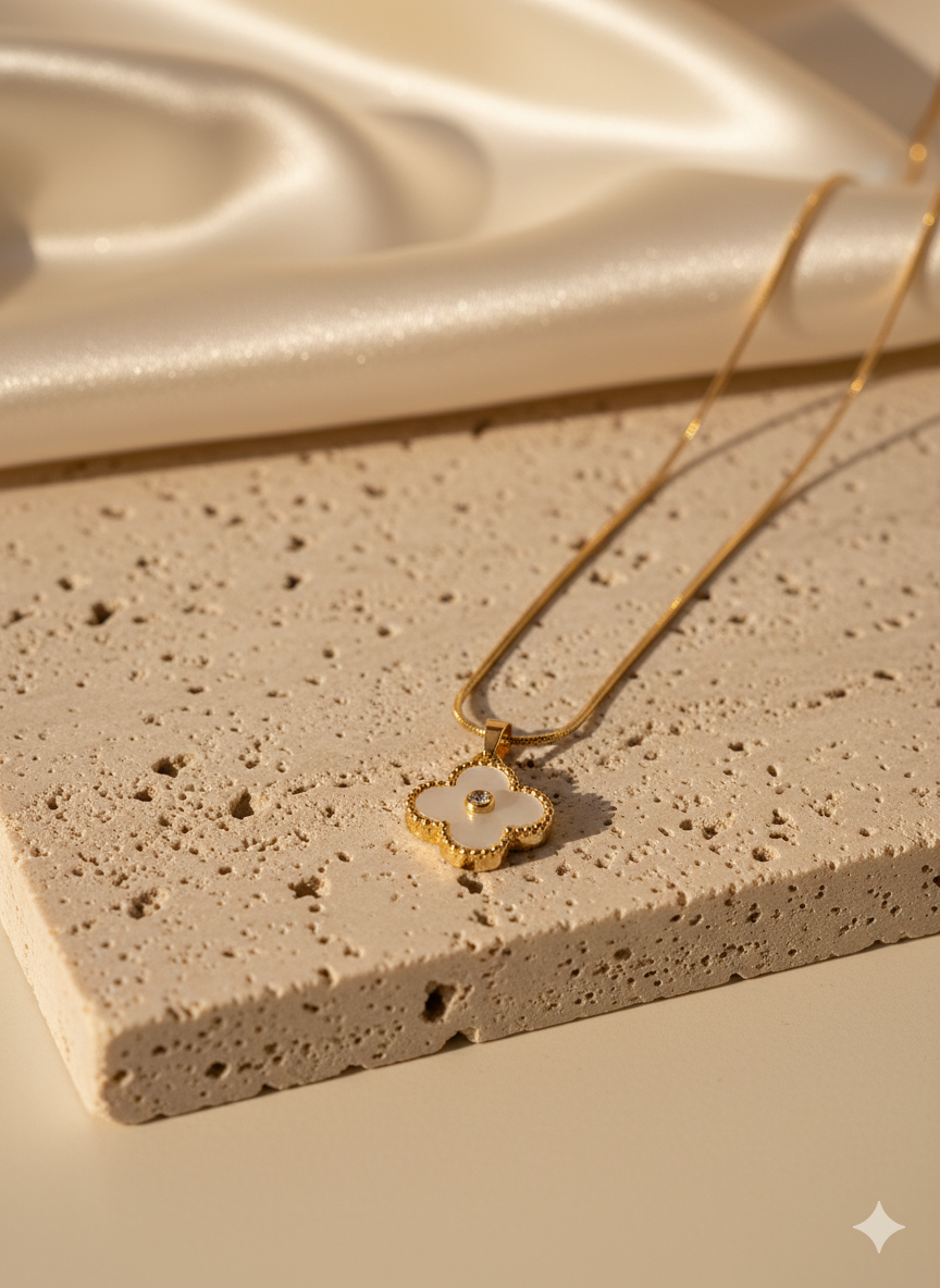 White Stone Pendant Necklace | 18K Gold Plated Anti Tarnish Jewellery by VyaraaWhite Stone Pendant Necklace | 18K Gold Plated Anti Tarnish Jewellery by Vyaraa